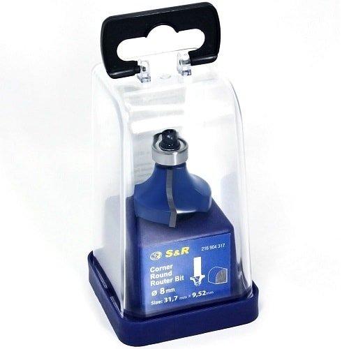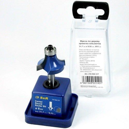 Фреза S&R 31,7х9,52 мм – калювальна кромкова фреза з підшипником для обробки країв заготовки з дерева та дерев'яних панелей. Виготовлена фреза з високовуглецевої сталі, завдяки чому інструментом можна працювати як з м'якою, так і з твердою деревиною. На кінці обладнана фреза підшипником для легкого проходження по деталі, яка запобігає проникненню фрези в деталь.