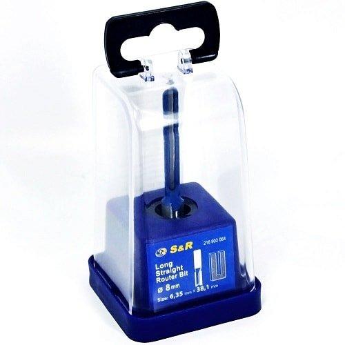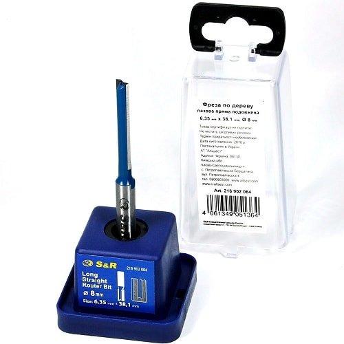 Фреза пазова S&R 6,35х38 мм – пазова фреза подовжена пряма призначена для вибірки пазів прямокутної форми глибиною до 38 мм. Виготовлена фреза з високовуглецевої сталі, завдяки чому інструментом можна працювати як з м'якою, так і з твердою деревиною.