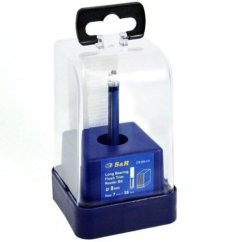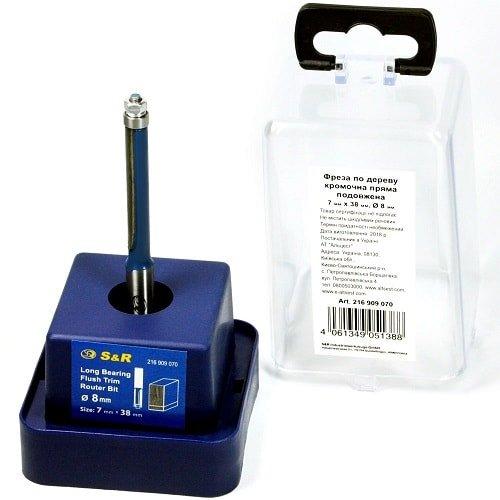 Фреза S&R 7х38 мм – пряма кромкова фреза подовжена з нижнім підшипником для обробки країв заготовки з дерева та дерев'яних панелей. Виготовлена фреза з високовуглецевої сталі, завдяки чому інструментом можна працювати як з м'якою, так і з твердою деревиною. На кінці обладнана фреза підшипником для легкого проходження по деталі, що запобігає проникненню фрези в деталь. подовжена S&R 7х38 мм призначена для обробки кромок дерев'яних заготовок, особливо необхідна при серійній, однотипній обробці.