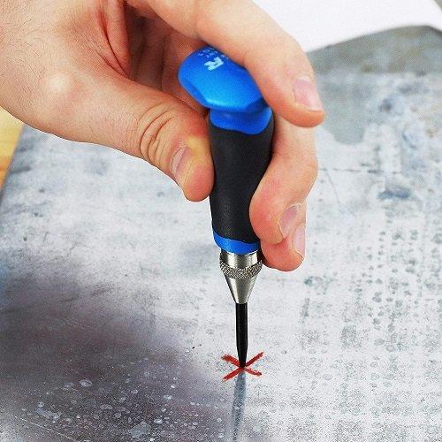 Зручна рукоятка керна захищає руки від удару. Кернер S&R 4,0 х 145мм дозволяє виконувати роботу швидко, серійно робити позначки та отвори.