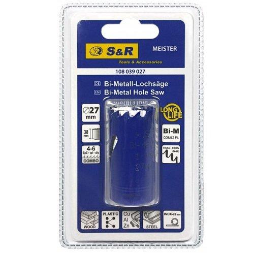 Кільцева пила S&R Meister 27мм HSS-Co8% (М42) – біметалічна універсальна кільцева пила, яку можна використовувати для пилки дерева, гіпсокартону, пластику, сталі, в тому числі і нержавіючої сталі завтовшки до 3 мм. < br /> Основні переваги кільцевої пилки СР Meister? 27 мм:
