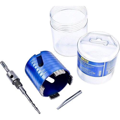 У комплекті з коронкою поставляється центрувальне свердло, клин, хвостовик SDS-plus.