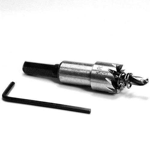 Коронка по металу S&R 16 мм складається з кільцевої коронки, хвостовика та центрувального свердла з пружиною, завдяки якому коронкою можна виконати точні та рівні отвори в металі. У комплекті також йде шестигранний L-подібний ключ для легкого складання та встановлення коронки.