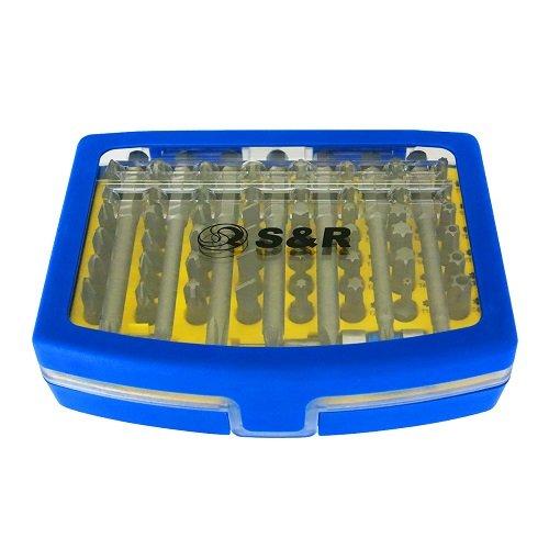 Набір біт S& R 57 штук для якісної роботи зі скріплення дерев'яних, металевих та пластикових предметів за допомогою шурупів різного діаметру та з різним шліцом.