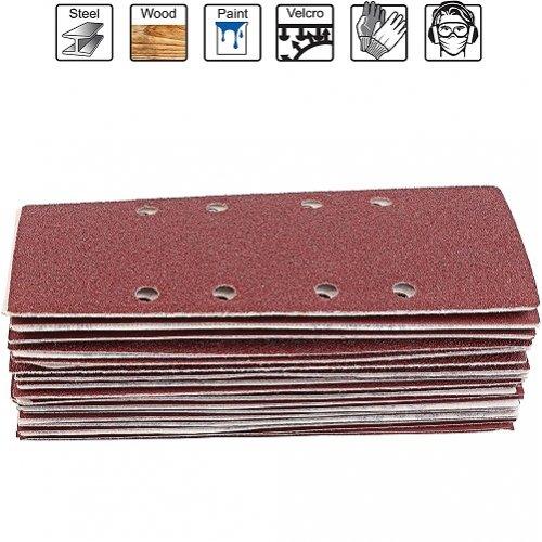 S&R 93x230 мм – набір шліфувальних листів для роботи з вібраційними шліфувальними машинами. 8 отворів на шліфлистах дозволяють легше відводити пил у процесі шліфування.