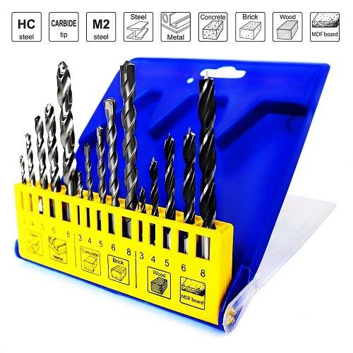 S&R 15 шт. - комбінований набір свердлів, що входить 5 свердлів по дереву, 5 свердлів по металу, 5 свердлів по бетону. Таким чином купуючи один набір свердлів, Ви отримуєте універсальний інструмент для роботи з різним типом матеріалу: бетон, метал, дерево, пластик та ін. якісне свердління твердої та м'якої деревини. Обладнані свердла гострим кінчиком для точного засвердлювання. У набір входить 5 свердлів по дереву: