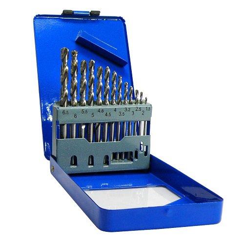 S&R Meister Co 13 шт. – набір свердлів по металу для свердління отворів у металі, нержавіючої сталі, жаростійкої та високолегованої сталі, та ін. міцних твердих металах. різних видів, і навіть продовжує термін служби свердлам. Свердла виготовлені методом фрезерування за стандартами DIN 338. Кут ріжучої кромки розташований під кутом 135 градусів, що дозволяє легко просвердлювати навіть дуже тверді метали. Свердла обладнані циліндричним хвостовиком для роботи з більшістю дрилів та свердлильних установок.