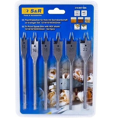Покупка набору пір'яних свердлів по дереву S&R рекомендується для аматорської або професійної роботи.