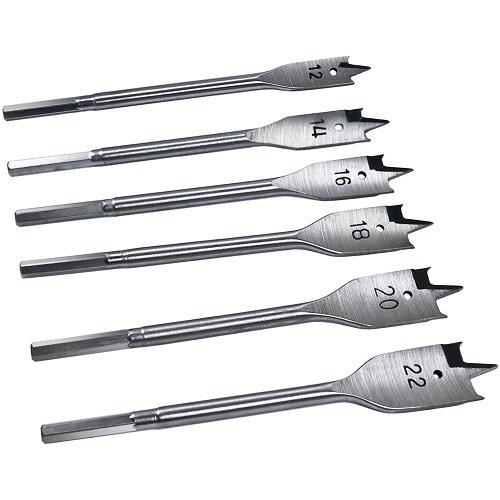 Набір свердел S&R по дереву пір'яні 6 шт. 12-22 мм - призначений для свердління дерев'яних заготовок, МДФ, фанери. У набір включені 6 свердлів із тригранним заточенням діаметром: 12, 14, 16, 18, 20, 22 мм. Кожен свердло виготовлено із якісної сталі, оброблено від корозії. На кожній одиниці з набору для зручності використання нанесений діаметр свердління.