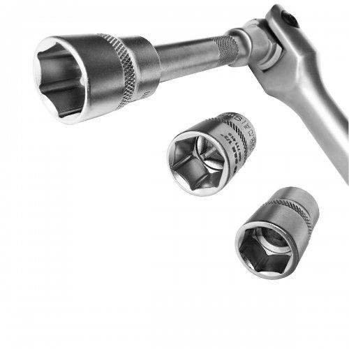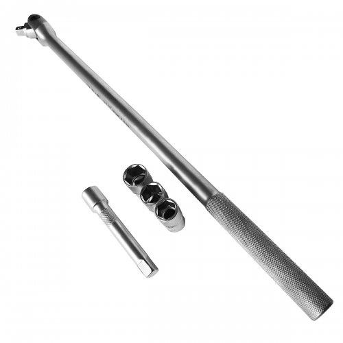Вороток S&R 1/2” 600 мм – комір з трьома торцевими головками для відкручування закручування кріпильних елементів, укомплектований також подовжувачем для роботи з віддаленими або важкодоступними гайками.