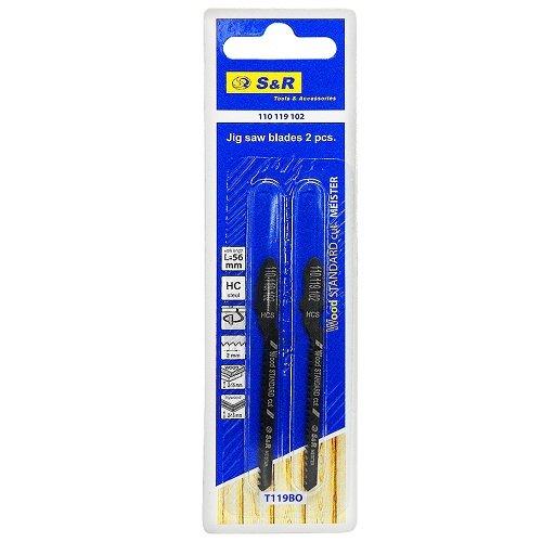 S&R Meister T119BO 2шт. – пиляльне полотно для пиляння дерев'яних та дерево містять матеріалів, таких як ДСП, ДВП, фанера. Використовується з лобзиком для чистого фігурного різу. Пилки поставляються в комплекті з 2 шт.