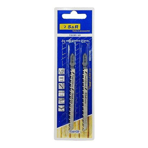 S&R Meister T301CD 2шт. – пиляльне полотно для пиляння дерев'яних та дерево містять матеріалів, таких як ДСП, ДВП, фанера. Використовується з лобзиком для прямого чистого різання. Пилки поставляються в комплекті з 2 шт.