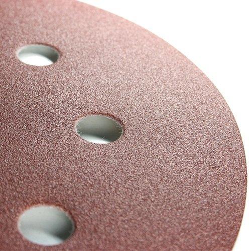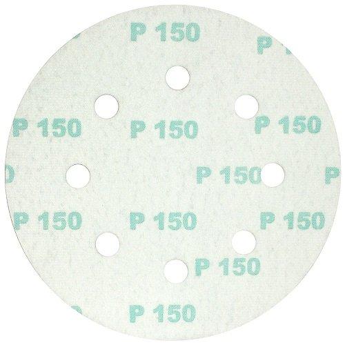Для ефективного відведення пилу в процесі роботи на шліфувальному колі передбачено 8 отворів. Зернистість кола 150, що забезпечує чистове очищення поверхні. Шліфкруг на липучці здатний знімати лакофарбові покриття, вирівнювати шар штукатурки, знімати металеві та дерев'яні задирки.
