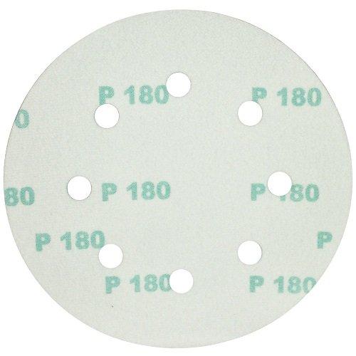 Для ефективного відведення пилу в процесі роботи на шліфувальному колі передбачено 8 отворів. Зернистість кола 180, що забезпечує чистове очищення поверхні. Шліфкруг на липучці здатний знімати лакофарбові покриття, вирівнювати шар штукатурки, знімати металеві та дерев'яні задирки.