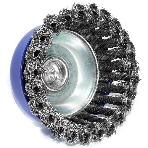 Щітки чашкові S&R виготовлені з високоякісних матеріалів і з суворим дотриманням технологій. Щітка виготовлена із сталевого дроту та сплетена в окремі ділянки, за рахунок чого має жорстку основу та забезпечує грубе очищення поверхні від будь-якого забруднення або фарби. Основа щітки зі сталі, що надійно тримає конструкцію в процесі роботи та забезпечує довгий термін служби інструменту.