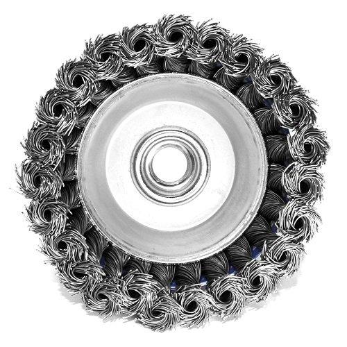 Щітка чашкова пряма S&R 100 для очищення металів або деревних матеріалів від різноманітних покриттів, корозії або забруднень, зачищення зварних швів. Призначена для використання з кутовими шліфувальними машинами при максимальній швидкості до 8500 об/хв.