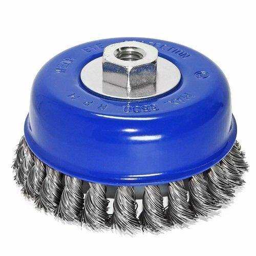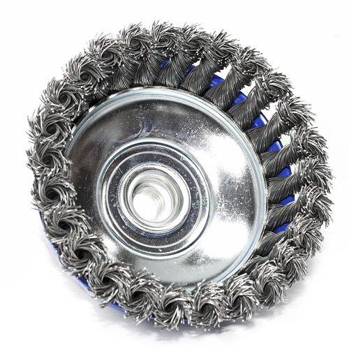 Щітки чашкові S&R виготовлені з високоякісних матеріалів і з суворим дотриманням технологій. Щітка виготовлена із сталевого дроту та сплетена в окремі ділянки, за рахунок чого має жорстку основу та забезпечує грубе очищення поверхні від будь-якого забруднення або фарби. Основа щітки зі сталі, що надійно тримає конструкцію в процесі роботи та забезпечує довгий термін служби інструменту.
