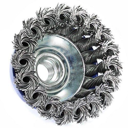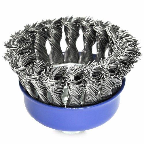 Щітки чашкові S&R виготовлені з високоякісних матеріалів і з суворим дотриманням технологій. Щітка виготовлена із сталевого дроту та сплетена в окремі ділянки, за рахунок чого має жорстку основу та забезпечує грубе очищення поверхні від будь-якого забруднення або фарби. Основа щітки зі сталі, що надійно тримає конструкцію в процесі роботи та забезпечує довгий термін служби інструменту.