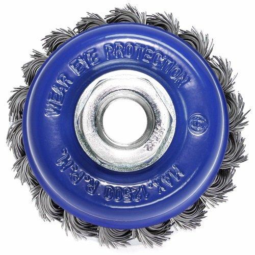Щітка чашкова пряма S&R 75 для очищення металів або деревних матеріалів від різноманітних покриттів, корозії або забруднень, зачищення зварних швів. Призначена для використання з кутовими шліфувальними машинами при максимальній швидкості до 12500 об/хв.