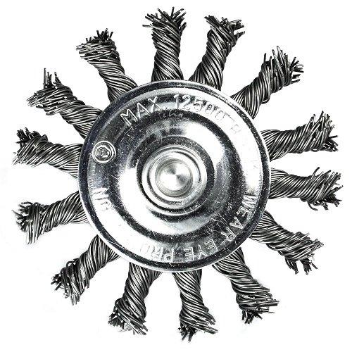 Щітка дискова S&R виготовлена з високоякісних матеріалів і з суворим дотриманням технологій. Щітка виготовлена із сталевого дроту та сплетена в окремі ділянки, за рахунок чого має жорстку основу та забезпечує грубе очищення поверхні від будь-якого забруднення або фарби. Обладнана щітка циліндричним хвостовиком - 6 мм, що підходить для всіх типів дрилів.