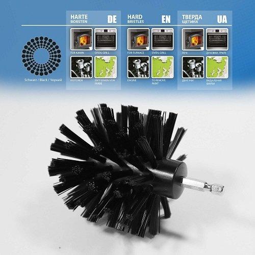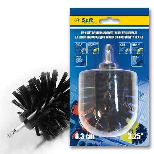 Щітка нейлонова чорна S&R 83 мм кругла жорстка - Інструмент для роботи з дрилем або шуруповертом. Призначений для чищення грилів, печей, інших забруднених металевих поверхонь. Також нейлонова щітка підходить для видалення фарби з різних поверхонь.