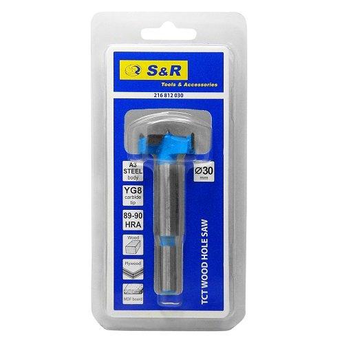 Свердло Форстнера S&R 30 мм – свердло для свердління круглих отворів діаметром 30 мм у м'якій та твердій деревині. Використовуються з дрилями та свердлильними верстатами в основному для меблевого виробництва.
