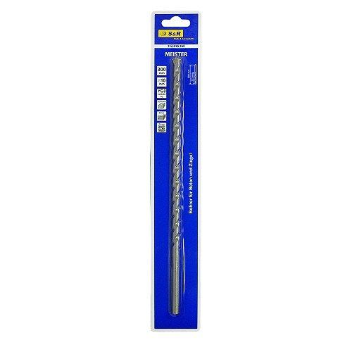 S&R Meister 10x300 мм – свердло для свердління отворів у бетоні, цеглі, натуральному та штучному камені. Свердло виготовлене з міцної сталі з твердосплавною карбідною напайкою, завдяки чому якісно виконують свердління в твердих будівельних матеріалах.