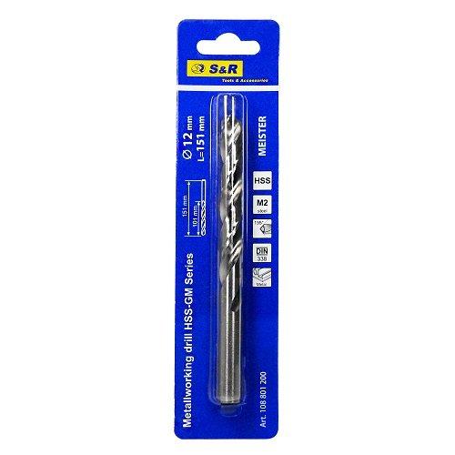 Свердло по металу S&R Meister HSS 12.0x151 мм виготовлено за стандартами DIN338. Обладнаний циліндричним хвостовиком. Постачається у блістері