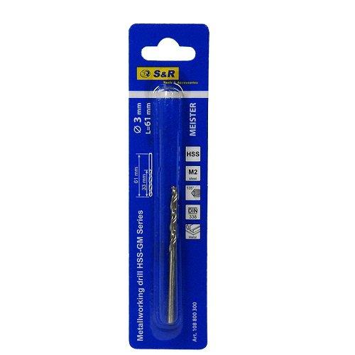Свердло по металу S&R Meister HSS 3.0x61 мм виготовлено за стандартами DIN338. Обладнаний циліндричним хвостовиком. Постачається у блістері.