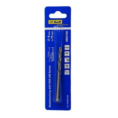 Свердло по металу S&R Meister HSS 4.0x75 мм виготовлено за стандартами DIN338. Обладнаний циліндричним хвостовиком. Постачається у блістері.