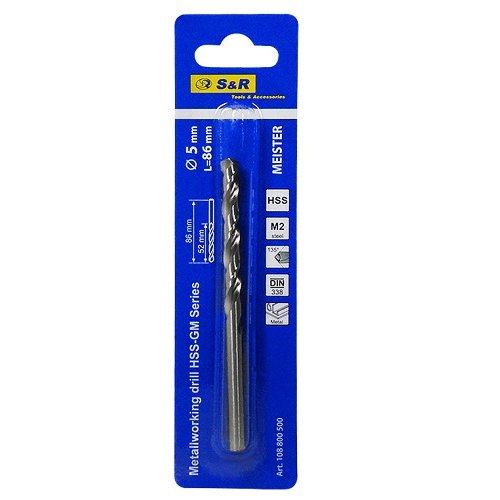 Свердло по металу S&R Meister HSS 5.0x86 мм виготовлено за стандартами DIN338. Обладнаний циліндричним хвостовиком. Постачається у блістері.