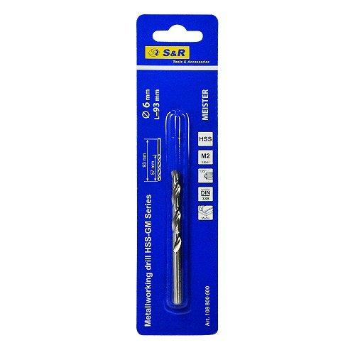 Свердло по металу S&R Meister HSS 6.0x93 мм виготовлено за стандартами DIN338. Обладнаний циліндричним хвостовиком. Постачається у блістері.