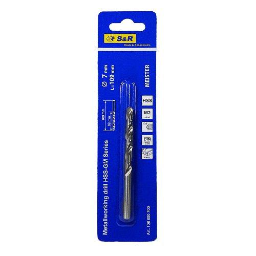 S&R Meister HSS 7.0x109 мм – свердло по металу для свердління отворів у металевих, залізних, пластикових, чавунних поверхнях, а також виробів з кольорового металу. Використовуються свердла з дрилями та свердлильними установками.