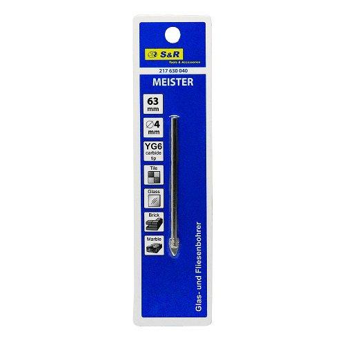 Свердло S&R Meister 4х63 мм – витратний інструмент для свердління отворів у крихкому матеріалі скло, кераміка, мармур.