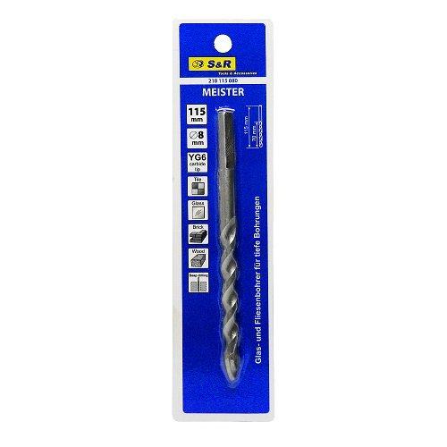 S&R Meister 8х115 мм глибоке свердління – свердло для свердління глибоких отворів у склі, керамічній та мармуровій плитці, а також за рахунок спеціальної напайки є можливість використовувати для цегли та кам'яної кладки.