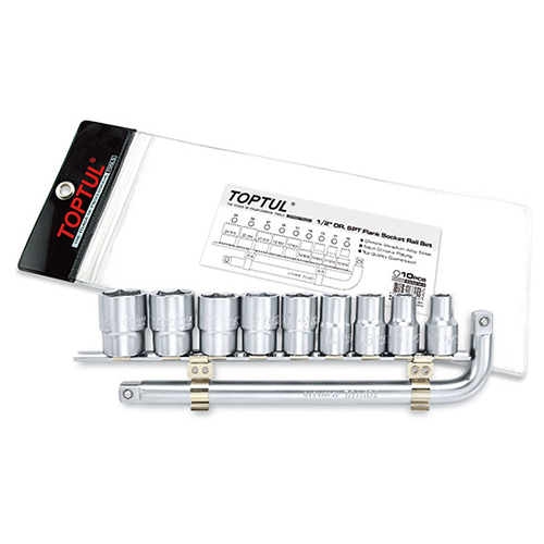 Toptul Набір головок торцевих на планці 1/2" 10-24 мм + Г-обр. вороток TOPTUL GAAG1010 GAAG1010