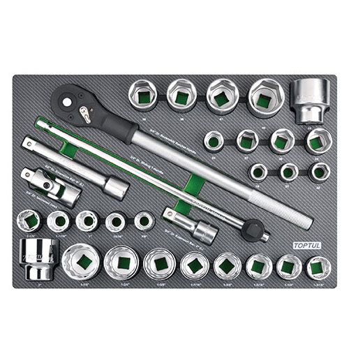 Toptul Набір головок з тріскачкою в ложементі (метр.+дюйм) 3/4" 31ед. TOPTUL GED3108 GED3108