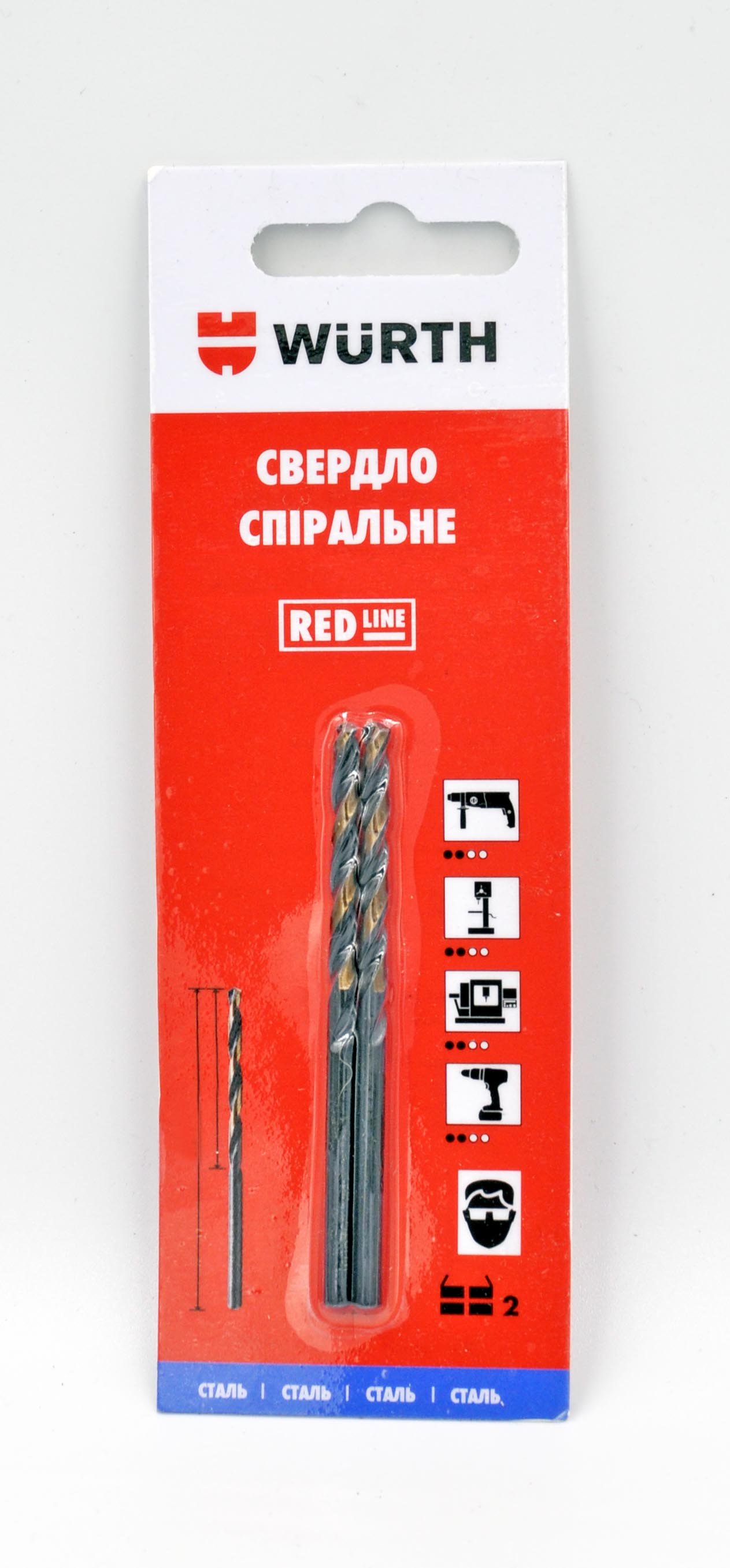 WURTH Свердло спіральне по металу, HSS, DIN338, 2шт. в блістері, 4мм, RED LINE 0624740902