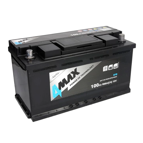 Акумулятор 4MAX 12В 100Ач/900A (EN) START&STOP EFB (P+ стандартні клеми) 353x175x190 B13 - пляшка 10.5 мм (пуск/efb)