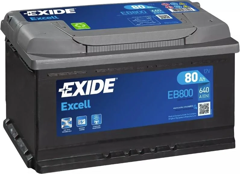Батарея акумуляторна EXIDE Excell 12(В) 80(Агод.) 640(А) EB800