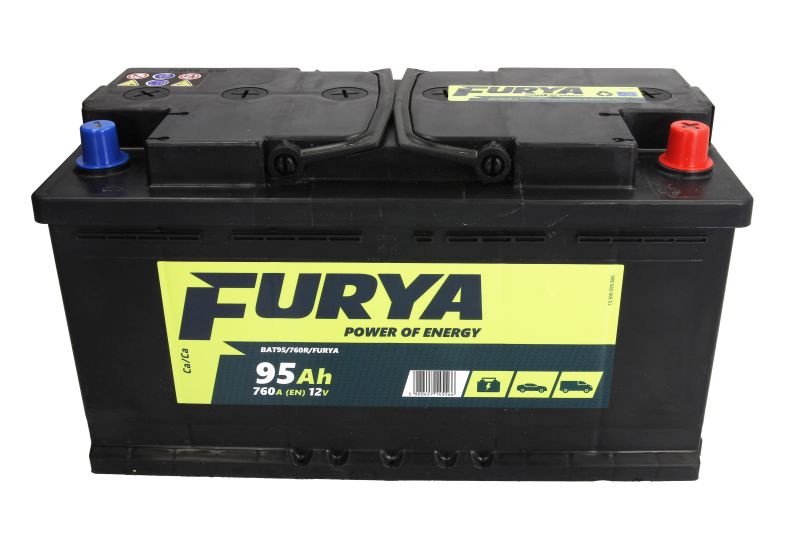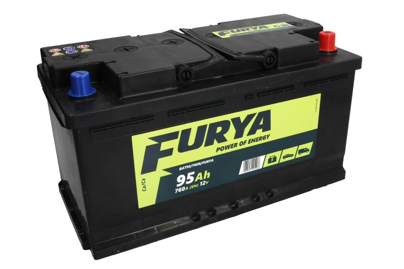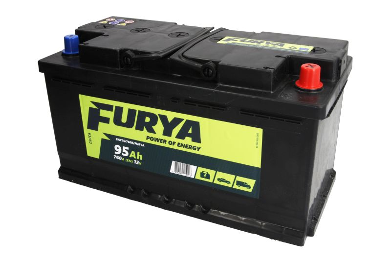 Акумулятор FURYA 12В 95Ач/760A (P+ стандартні клеми) 353x175x190 B13 - пляшка 10.5 мм (пуск)