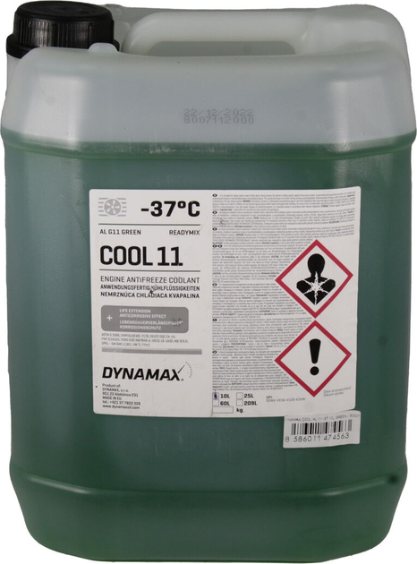 Антифриз DYNAMAX COOL AL G11 -37 10 л зеленийАнтифриз DYNAMAX COOL AL G11 -37Антифриз призначений для систем охолодження двигунів, виготовлених з легких сплавів. Захищає систему охолодження автомобіля від замерзання і корозії. Гарантує дуже хорошу теплопередачу. Він змішується з охолоджуючими рідинами на основі моноетиленгліколю і пропіленгліколю.Спецификациiя: Porsche/VW/Audi/Seat/Skoda TL 774 C; Mercedes DBL 7700; Ford ESD M97 B49-A; Man 324; GM US 6277 M; Ford WSS-M97B44-C; Chrysler MS 9176; BMW N 600 69.0; VOLVO (Reg. No 260); FORD ESD M97 B49-A; OPEL GM QL 130100