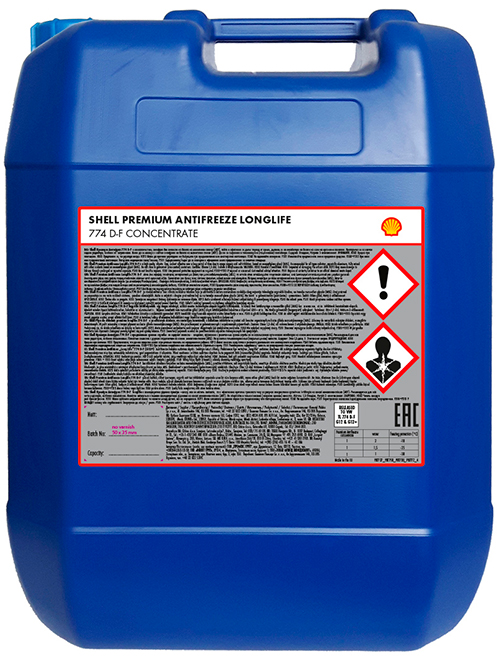 Антифриз концентрат Shell Premium Longlife 774 D-F - концентрат високоякісної рідини для систем охолодження, без нітритів, амінів, фосфатів (NAP free), силікатів та боратів, на основі етиленгліколю, який перед використанням потрібно розбавити водою. Антифриз Shell Premium Longlife 774 D-F містить пакет інгібіторів корозії на базі органічних кислот (OAT).
