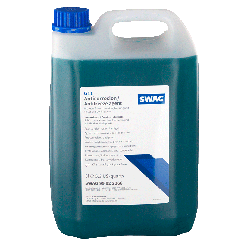SWAG № 99 92 2268 являє собою засіб для захисту від замерзання та корозії для всіх типів двигунів внутрішнього згоряння з рідинним охолодженням. Вже при вмісті від 25% SWAG № 99 92 2268 захищає від корозії ікавітації, накипу, осаду та спінювання. У будь-якому випадку слід дотримуватись рекомендацій виробника транспортного засобу. Успішно використовується в двигунах з алюмінієвими головками блоку циліндрів та радіаторами. SWAG № 99 92 2268 перевірений на практиці та випробуваний на агрегатах з інструкціями із заливання відповідно до норм MAN 324, MB 325.0 та GM 1825M.