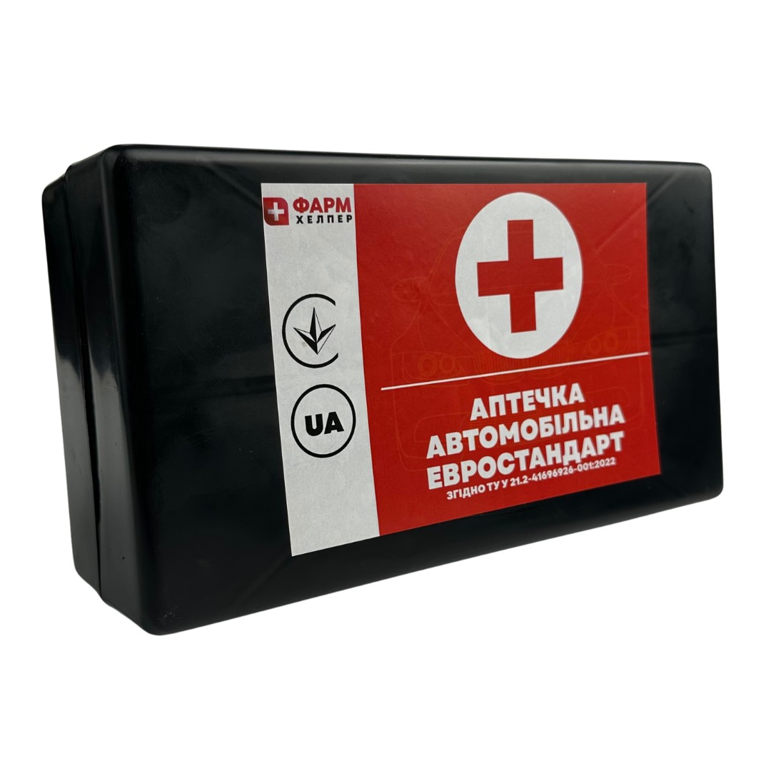 Аптечка медична автомобільна Євростандарт у футлярі — це сучасний та зручний набір засобів для надання першої долікарської допомоги у разі дорожньо-транспортних пригод, травм, опіків, порізів, кровотеч або інших невідкладних ситуацій, що можуть виникнути під час руху транспортного засобу.