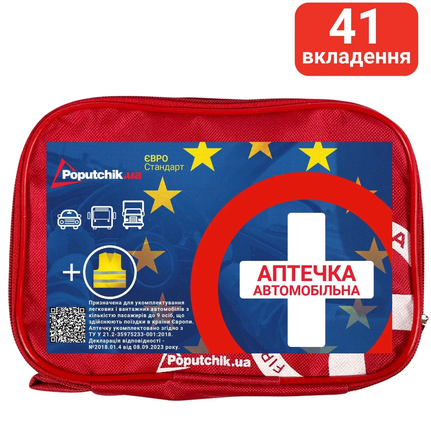 Аптечка медична автомобільна Євростандарт згідно ТУ+жилет Poputchik 02024М
