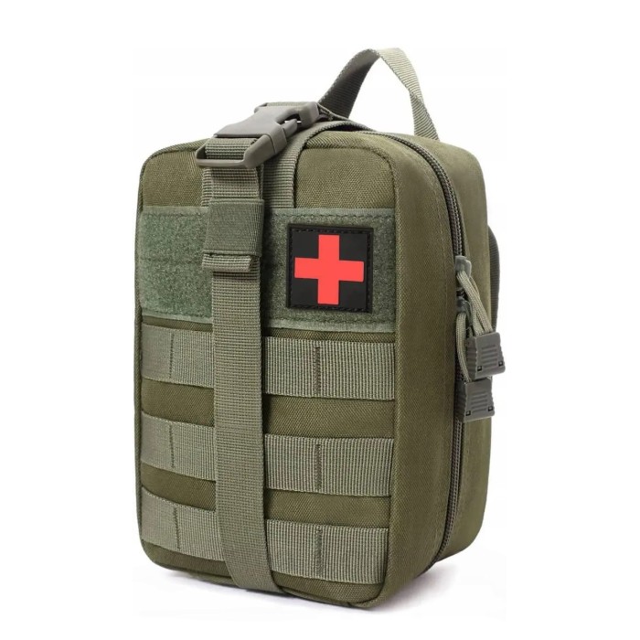Міцний тактичний підсумок із системою MOLLE, що дозволяє кріплення аптечки на бронежилеті, поясі, рюкзаку або спорядженні.