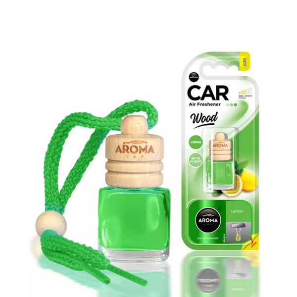 631081 Ароматизатор Aroma Car Wood Lemon 6ml (шт.). Автомобільний ароматизатор Aroma Car із серії Wood – це елегантний скляний флакон із приємною парфумованою композицією із французької сировини та пробкою із гігроскопічної деревини. Ароматизатор має гарний аромат Lemon (Лимон). Приємний аромат у салоні вашого автомобіля підтримуватиметься до 50 днів*