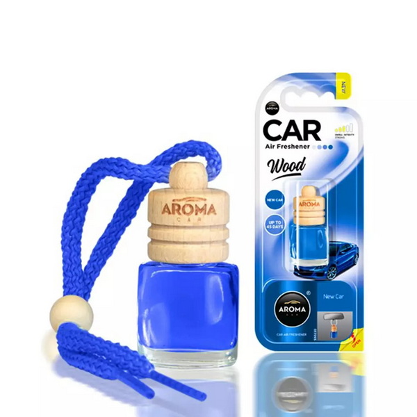631104 Ароматизатор Aroma Car Wood New Car 6ml (шт.). Автомобільний ароматизатор Aroma Car із серії Wood – це елегантний скляний флакон із приємною парфумованою композицією із французької сировини та пробкою із гігроскопічної деревини. Ароматизатор має гарний аромат New Car (Новий автомобіль). Приємний аромат у салоні вашого автомобіля підтримуватиметься до 50 днів* Технологія: Wood — це використання для пробки деревини спеціальних порід, яка після змочування рідким концентратом ароматизатора поступово звільняє з деревини чудовий аромат парфуму. ІНСТРУКЦІЇ З ВИКОРИСТАННЯ: Дістаньте ароматизатор із упаковки. Відкрутіть дерев'яну пробку та зніміть пластикову пробку зі скляної пляшки. Потім ретельно закрутіть дерев'яну пробку і переверніть пляшку догори дном. Зачекайте, поки деревина вбере ароматизатор і поверніть флакон у вертикальне положення вниз дном. Підвісьте виріб за допомогою шнурка на дзеркало заднього виду у салоні автомобіля. * за дотримання певних умов використання.