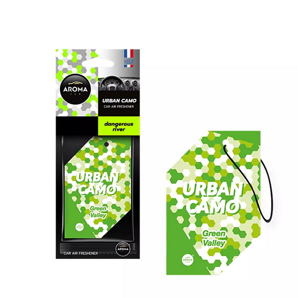 831655 Ароматизатор Aroma Car Urban Camo Зелена долина. Усі відтінки міського камуфляжу! Незвичайні, дивовижні аромати серії URBAN CAMO. Вибери свій - закамуфлюйся ;) Ароматизатор автомобільний Aroma Car Urban Camo - Green Valley з ароматом Dangerous River (Небезпечна річка) Технологія: Cellulose - ароматична підвіска з целюлози, просочена рідким ароматизатором. Аромат вивільняється у процесі випаровування. Інструкція із застосування: Додайте ароматизатор із плівкової упаковки. Повісьте виріб на салонне дзеркало заднього виду та насолоджуйтесь вибраним ароматом.